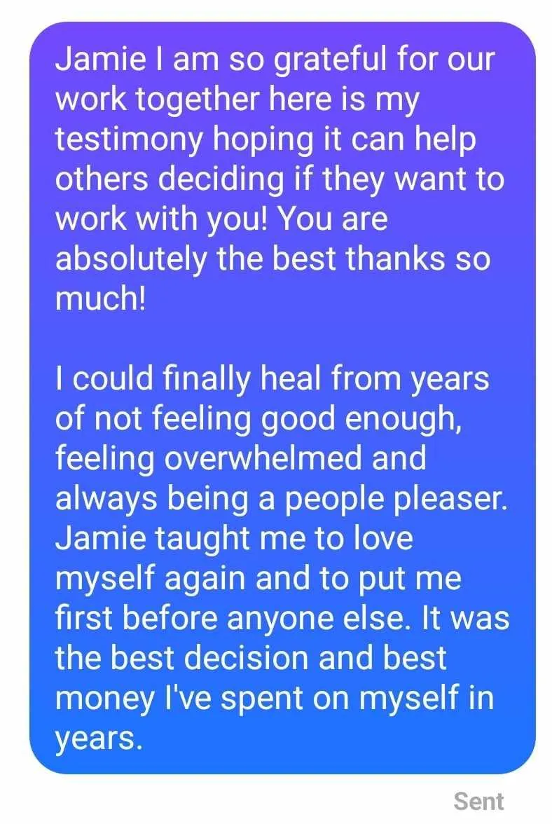 Jenny joined my 1:1 healing session, where I used over 20 years of experience to help her heal emotional wounds. We worked together to release bad thoughts and feelings from her brain. I also helped Jenny balance her energy, which made her feel calm in both her mind and body. By the end, she felt stronger and learned how to set healthy boundaries. Now, Jenny feels confident and is living her best life.